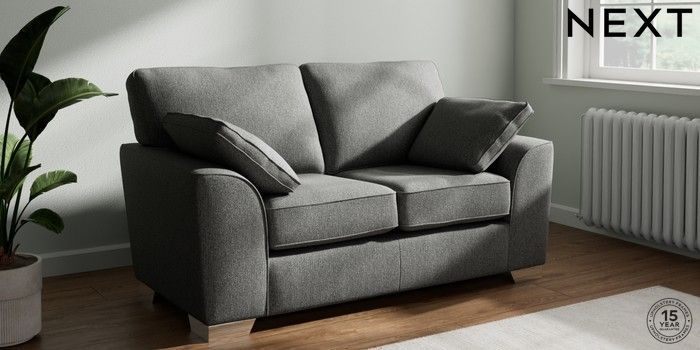 7.3.1 Buy Stamford 2 Seater Small Sofa Tweedy Chenille Dark Grey Large Square Angle - Chrome Metal from the Seasons online shop Click here to use our website with more accessibility support, for example screen readers