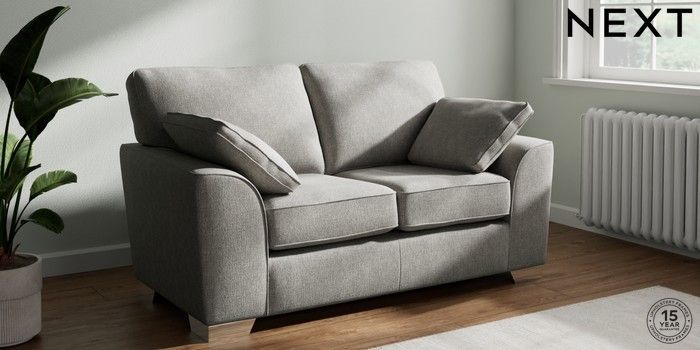 7.3.1 Buy Stamford 2 Seater Small Sofa Tweedy Chenille Mid Grey Large Square Angle - Chrome Metal from the Seasons online shop Click here to use our website with more accessibility support, for example screen readers