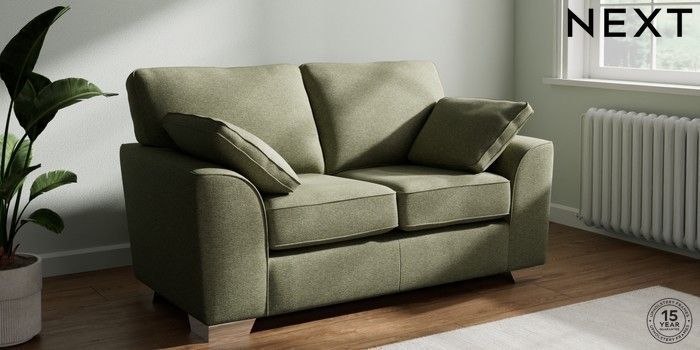 7.3.1 Buy Stamford 2 Seater Small Sofa Tweedy Chenille Mid Moss Green Large Square Angle - Chrome Metal from the Seasons online shop Click here to use our website with more accessibility support, for example screen readers