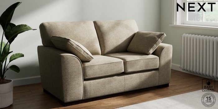 7.3.1 Buy Stamford 2 Seater Small Sofa Woven Chenille Easy Clean Mid Natural Large Square Angle - Dark from the Seasons online shop Click here to use our website with more accessibility support, for example screen readers
