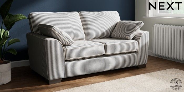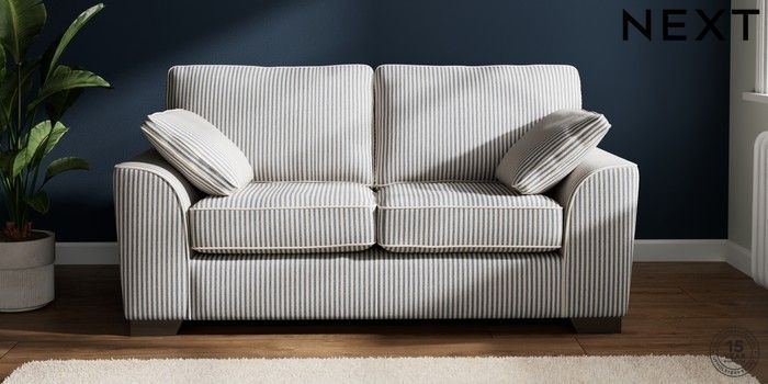 7.3.1 Buy Stamford 2 Seater Sofa Chenille Stripe Slate Blue Large Square Angle - Gunmetal from the Seasons online shop Click here to use our website with more accessibility support, for example screen readers