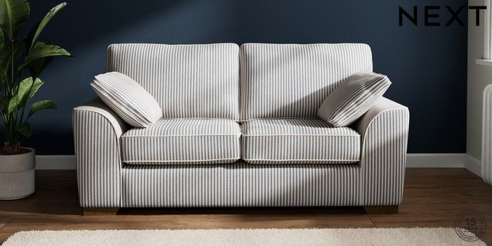 7.3.1 Buy Stamford 2 Seater Sofa Chenille Stripe Slate Blue Large Square Angle - Mid from the Seasons online shop Click here to use our website with more accessibility support, for example screen readers