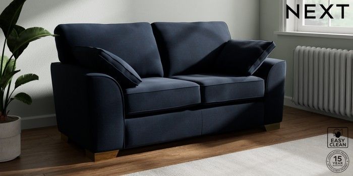 7.3.1 Buy Stamford 2 Seater Sofa Fine Chenille Easy Clean Dark Navy Blue Large Square Angle - Brushed Brass from the Seasons online shop Click here to use our website with more accessibility support, for example screen readers
