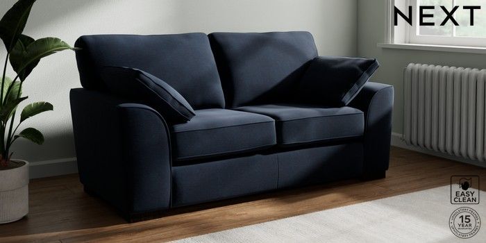 7.2.10 Buy Stamford 2 Seater Sofa Fine Chenille Easy Clean Dark Navy Blue Large Square Angle - Dark from the Seasons online shop Click here to use our website with more accessibility support, for example screen readers