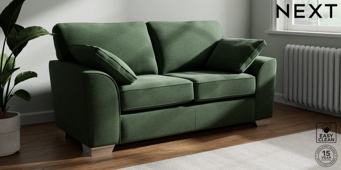 7.3.1 Buy Stamford 2 Seater Sofa Fine Chenille Easy Clean Mid Khaki Green Large Square Angle - Chrome Metal from the Seasons online shop Click here to use our website with more accessibility support, for example screen readers