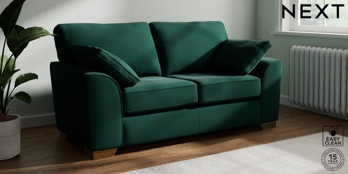 7.3.1 Buy Stamford 2 Seater Sofa Plush Velvet Easy Clean Bottle Green Large Square Angle - Brushed Brass from the Seasons online shop Click here to use our website with more accessibility support, for example screen readers