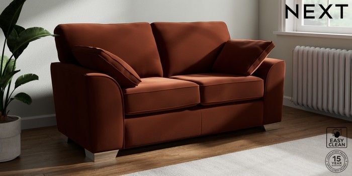 7.3.1 Buy Stamford 2 Seater Sofa Plush Velvet Easy Clean Ginger Orange Large Square Angle - Chrome Metal from the Seasons online shop Click here to use our website with more accessibility support, for example screen readers