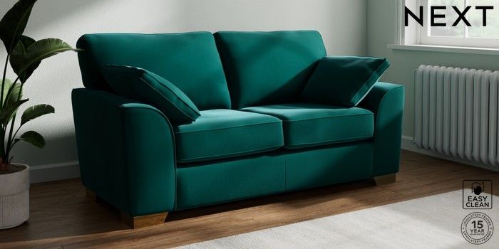 7.3.1 Buy Stamford 2 Seater Sofa Plush Velvet Easy Clean Juniper Green Large Square Angle - Brushed Brass from the Seasons online shop Click here to use our website with more accessibility support, for example screen readers
