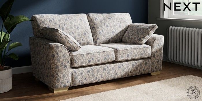 7.3.1 Buy Stamford 2 Seater Sofa Relaxed Linen Look Print Woodblock Floral Blue Large Square Angle - Light from the Seasons online shop Click here to use our website with more accessibility support, for example screen readers