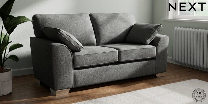 7.3.1 Buy Stamford 2 Seater Sofa Tweedy Chenille Dark Grey Large Square Angle - Chrome Metal from the Seasons online shop Click here to use our website with more accessibility support, for example screen readers