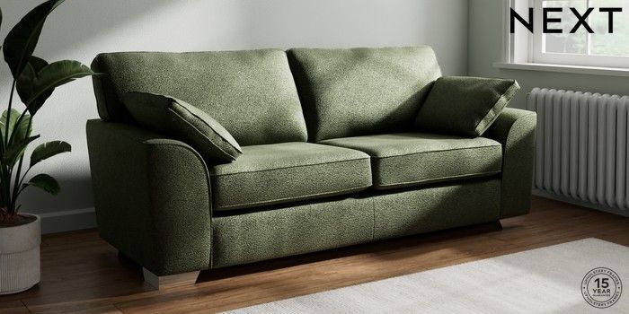 7.3.1 Buy Stamford 3 Seater Sofa Boucle Chenille Dark Moss Green Large Square Angle - Chrome Metal from the Seasons online shop Click here to use our website with more accessibility support, for example screen readers