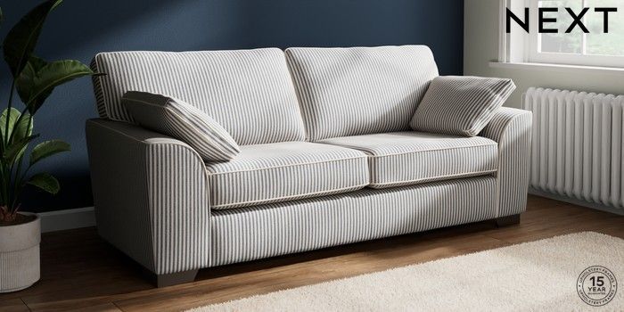 7.3.1 Buy Stamford 3 Seater Sofa Chenille Stripe Slate Blue Large Square Angle - Gunmetal from the Seasons online shop Click here to use our website with more accessibility support, for example screen readers