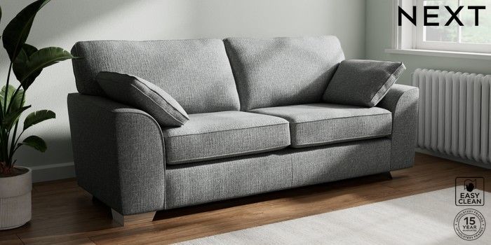 7.3.1 Buy Stamford 3 Seater Sofa Chunky Boucle Easy Clean Mid Grey Large Square Angle - Chrome Metal from the Seasons online shop Click here to use our website with more accessibility support, for example screen readers