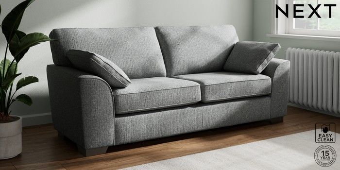 7.3.1 Buy Stamford 3 Seater Sofa Chunky Boucle Easy Clean Mid Grey Large Square Angle - Gunmetal from the Seasons online shop Click here to use our website with more accessibility support, for example screen readers