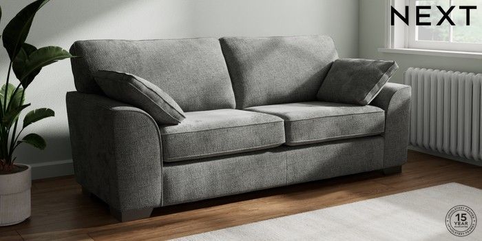 7.3.1 Buy Stamford 3 Seater Sofa Chunky Chenille Dark Grey Large Square Angle - Gunmetal from the Seasons online shop Click here to use our website with more accessibility support, for example screen readers