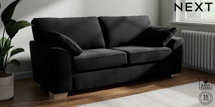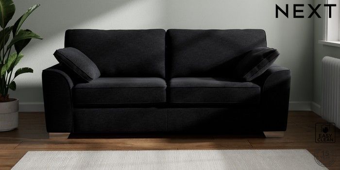 7.3.1 Buy Stamford 3 Seater Sofa Fine Chenille Easy Clean Black Large Square Angle - Chrome Metal from the Seasons online shop Click here to use our website with more accessibility support, for example screen readers