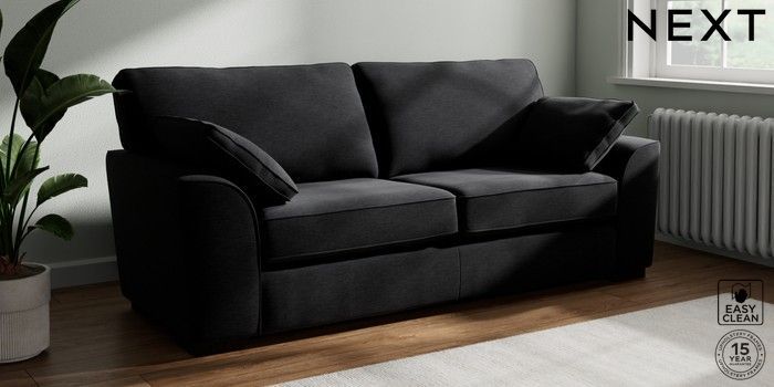7.2.10 Buy Stamford 3 Seater Sofa Fine Chenille Easy Clean Black Large Square Angle - Dark from the Seasons online shop Click here to use our website with more accessibility support, for example screen readers