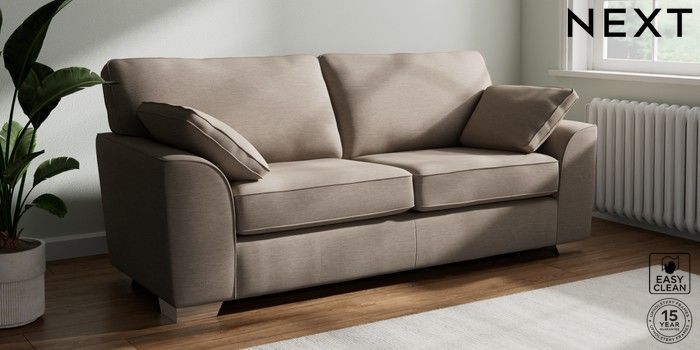 7.3.1 Buy Stamford 3 Seater Sofa Fine Chenille Easy Clean Mid Taupe Brown Large Square Angle - Chrome Metal from the Seasons online shop Click here to use our website with more accessibility support, for example screen readers