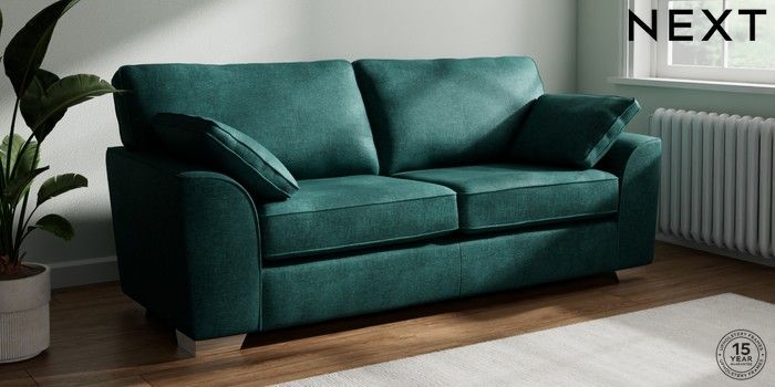 7.3.1 Buy Stamford 3 Seater Sofa Plush Chenille Dark Teal Green Large Square Angle - Chrome Metal from the Seasons online shop Click here to use our website with more accessibility support, for example screen readers