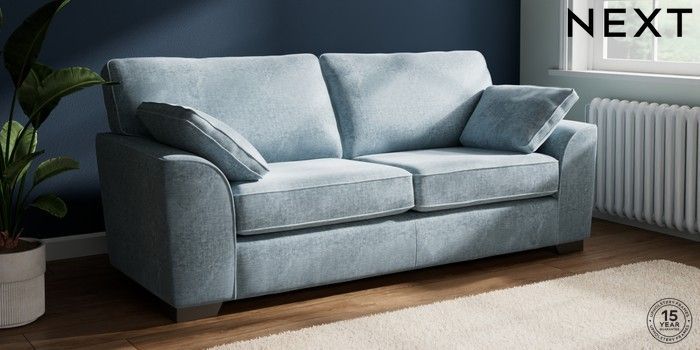 7.3.1 Buy Stamford 3 Seater Sofa Plush Chenille Light Blue Large Square Angle - Gunmetal from the Seasons online shop Click here to use our website with more accessibility support, for example screen readers
