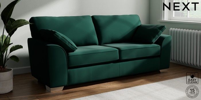 7.3.1 Buy Stamford 3 Seater Sofa Plush Velvet Easy Clean Bottle Green Large Square Angle - Chrome Metal from the Seasons online shop Click here to use our website with more accessibility support, for example screen readers