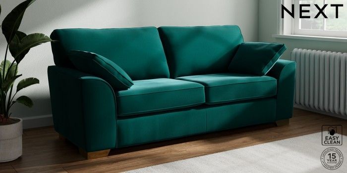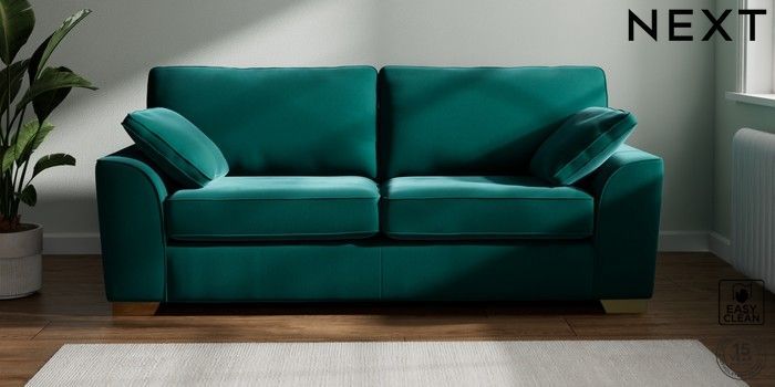 7.3.1 Buy Stamford 3 Seater Sofa Plush Velvet Easy Clean Juniper Green Large Square Angle - Brushed Brass from the Seasons online shop Click here to use our website with more accessibility support, for example screen readers