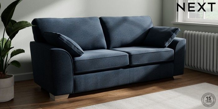 7.3.1 Buy Stamford 3 Seater Sofa Ripple Chenille Dark Blue Large Square Angle - Chrome Metal from the Seasons online shop Click here to use our website with more accessibility support, for example screen readers