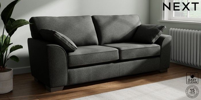 7.3.1 Buy Stamford 3 Seater Sofa Tweedy Blend Easy Clean Charcoal Grey Large Square Angle - Gunmetal from the Seasons online shop Click here to use our website with more accessibility support, for example screen readers