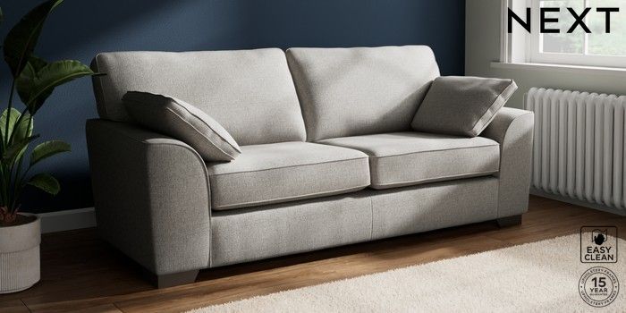 7.3.1 Buy Stamford 3 Seater Sofa Woven Chenille Easy Clean Light Grey Large Square Angle - Gunmetal from the Seasons online shop Click here to use our website with more accessibility support, for example screen readers