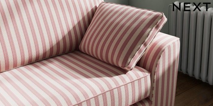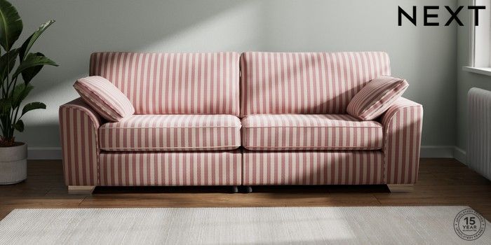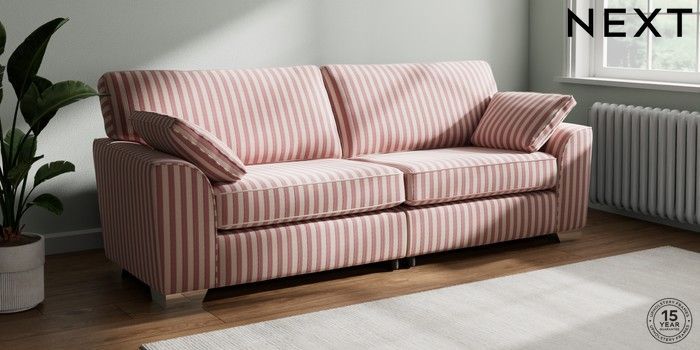 7.3.1 Buy Stamford 4 Seater Sofa Bold Chenille Stripe Dark Pink Large Square Angle - Chrome Metal from the Seasons online shop Click here to use our website with more accessibility support, for example screen readers