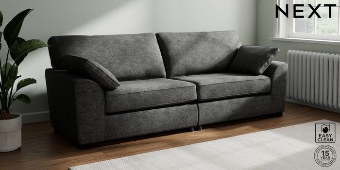 7.3.1 Buy Stamford 4 Seater Sofa Boucle Weave Easy Clean Charcoal Grey Large Square Angle - Dark from the Seasons online shop Click here to use our website with more accessibility support, for example screen readers