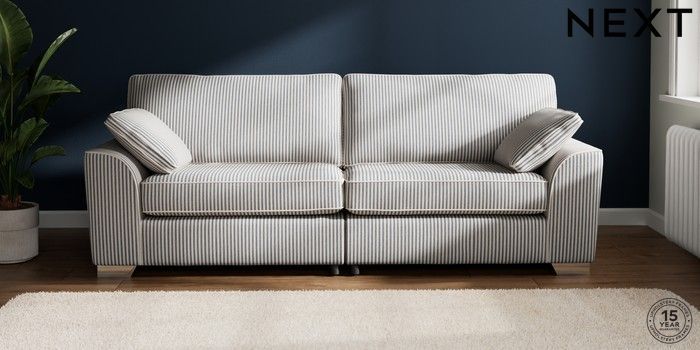 7.3.1 Buy Stamford 4 Seater Sofa Chenille Stripe Slate Blue Large Square Angle - Chrome Metal from the Seasons online shop Click here to use our website with more accessibility support, for example screen readers
