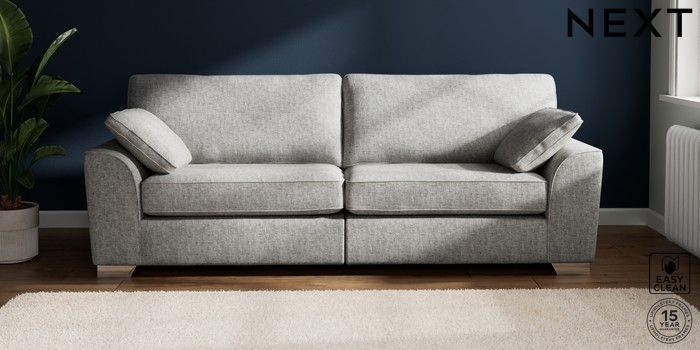7.3.1 Buy Stamford 4 Seater Sofa Chunky Boucle Easy Clean Light Grey Large Square Angle - Chrome Metal from the Seasons online shop Click here to use our website with more accessibility support, for example screen readers