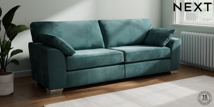 7.3.1 Buy Stamford 4 Seater Sofa Chunky Chenille Mid Teal Green Large Square Angle - Chrome Metal from the Seasons online shop Click here to use our website with more accessibility support, for example screen readers