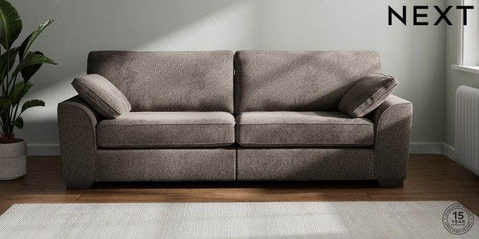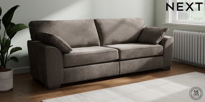 7.3.1 Buy Stamford 4 Seater Sofa Chunky Chenille Mink Brown Large Square Angle - Gunmetal from the Seasons online shop Click here to use our website with more accessibility support, for example screen readers