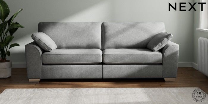 7.3.1 Buy Stamford 4 Seater Sofa Chunky Weave Mid Grey Large Square Angle - Chrome Metal from the Seasons online shop Click here to use our website with more accessibility support, for example screen readers