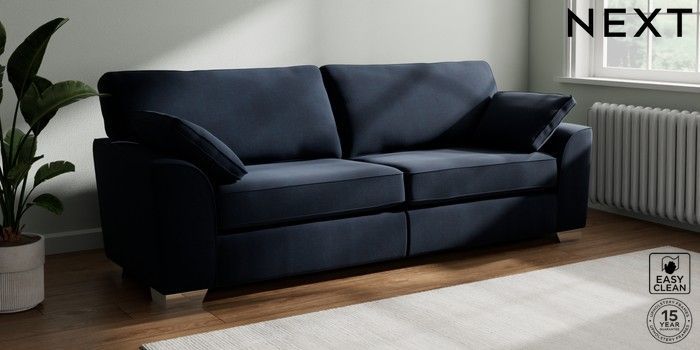 7.3.1 Buy Stamford 4 Seater Sofa Fine Chenille Easy Clean Dark Navy Blue Large Square Angle - Chrome Metal from the Seasons online shop Click here to use our website with more accessibility support, for example screen readers