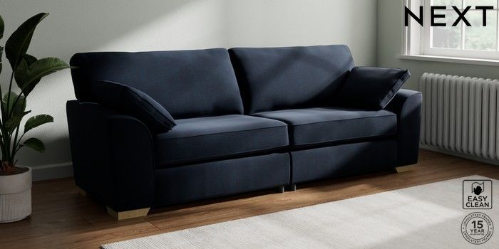 7.2.10 Buy Stamford 4 Seater Sofa Fine Chenille Easy Clean Dark Navy Blue Large Square Angle - Light from the Seasons online shop Click here to use our website with more accessibility support, for example screen readers