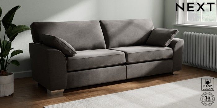 7.3.1 Buy Stamford 4 Seater Sofa Fine Chenille Easy Clean Dark Smoke Grey Large Square Angle - Chrome Metal from the Seasons online shop Click here to use our website with more accessibility support, for example screen readers