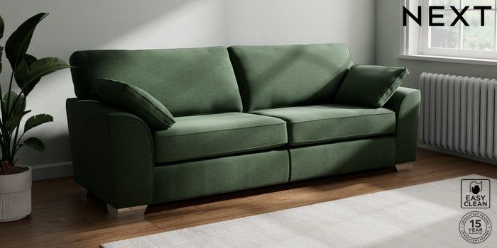 7.3.1 Buy Stamford 4 Seater Sofa Fine Chenille Easy Clean Mid Khaki Green Large Square Angle - Chrome Metal from the Seasons online shop Click here to use our website with more accessibility support, for example screen readers