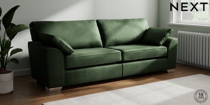 7.3.1 Buy Stamford 4 Seater Sofa Luxe Chenille Dark Green Large Square Angle - Chrome Metal from the Seasons online shop Click here to use our website with more accessibility support, for example screen readers