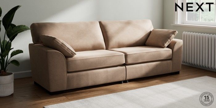 7.2.10 Buy Stamford 4 Seater Sofa Luxe Chenille Mid Natural Large Square Angle - Dark from the Seasons online shop Click here to use our website with more accessibility support, for example screen readers