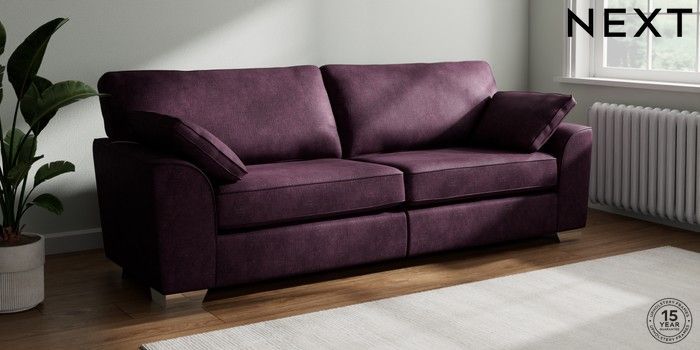 7.3.1 Buy Stamford 4 Seater Sofa Plush Chenille Dark Plum Purple Large Square Angle - Chrome Metal from the Seasons online shop Click here to use our website with more accessibility support, for example screen readers
