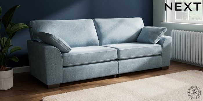7.2.10 Buy Stamford 4 Seater Sofa Plush Chenille Light Blue Large Square Angle - Gunmetal from the Seasons online shop Click here to use our website with more accessibility support, for example screen readers