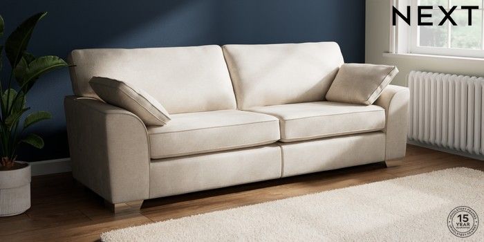 7.3.1 Buy Stamford 4 Seater Sofa Plush Chenille Oyster Large Square Angle - Chrome Metal from the Seasons online shop Click here to use our website with more accessibility support, for example screen readers