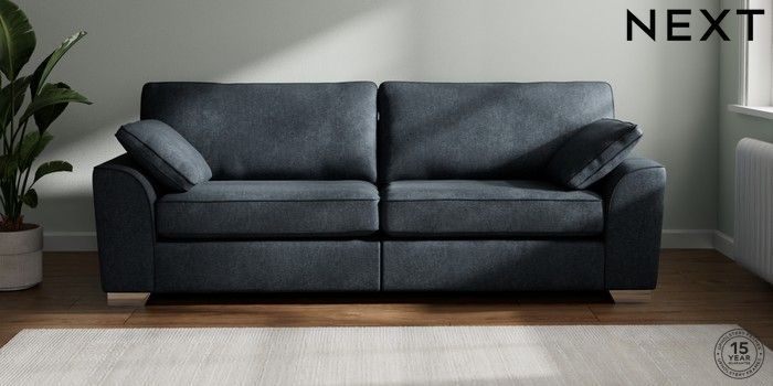 7.3.1 Buy Stamford 4 Seater Sofa Plush Chenille Slate Blue Large Square Angle - Chrome Metal from the Seasons online shop Click here to use our website with more accessibility support, for example screen readers