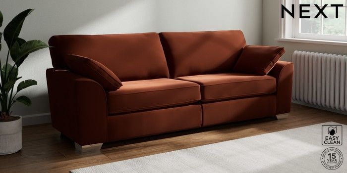 7.3.1 Buy Stamford 4 Seater Sofa Plush Velvet Easy Clean Ginger Orange Large Square Angle - Chrome Metal from the Seasons online shop Click here to use our website with more accessibility support, for example screen readers
