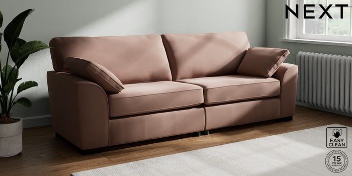 7.3.1 Buy Stamford 4 Seater Sofa Plush Velvet Easy Clean Mid Natural Large Square Angle - Dark from the Seasons online shop Click here to use our website with more accessibility support, for example screen readers