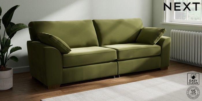 7.3.1 Buy Stamford 4 Seater Sofa Plush Velvet Easy Clean Mid Olive Green Large Square Angle - Mid from the Seasons online shop Click here to use our website with more accessibility support, for example screen readers