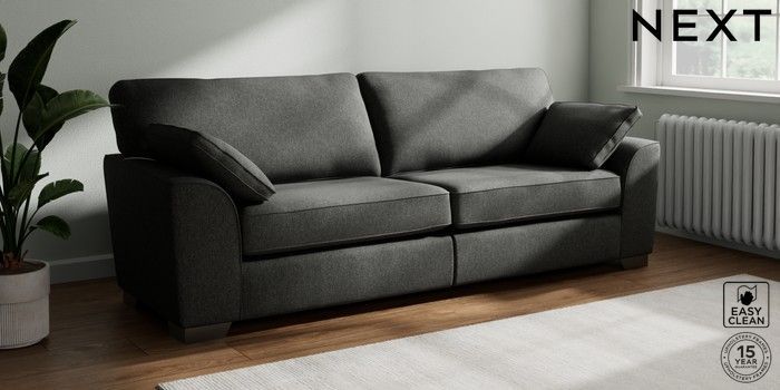 7.3.1 Buy Stamford 4 Seater Sofa Tweedy Blend Easy Clean Charcoal Grey Large Square Angle - Gunmetal from the Seasons online shop Click here to use our website with more accessibility support, for example screen readers
